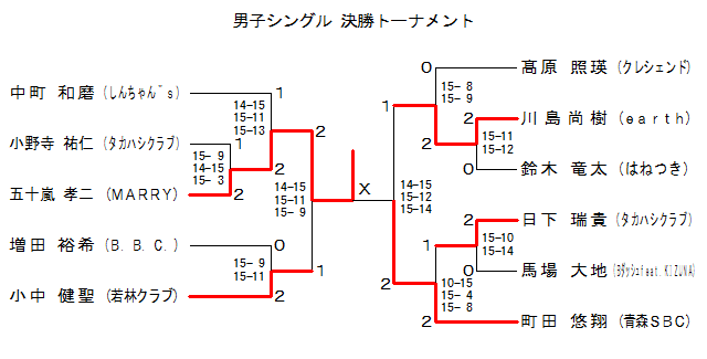 | MS-9 | 青森SBC | 町田 悠翔 | 2 | 14-15 15-12 15-14 | 1 | 川島尚樹 | earth | |